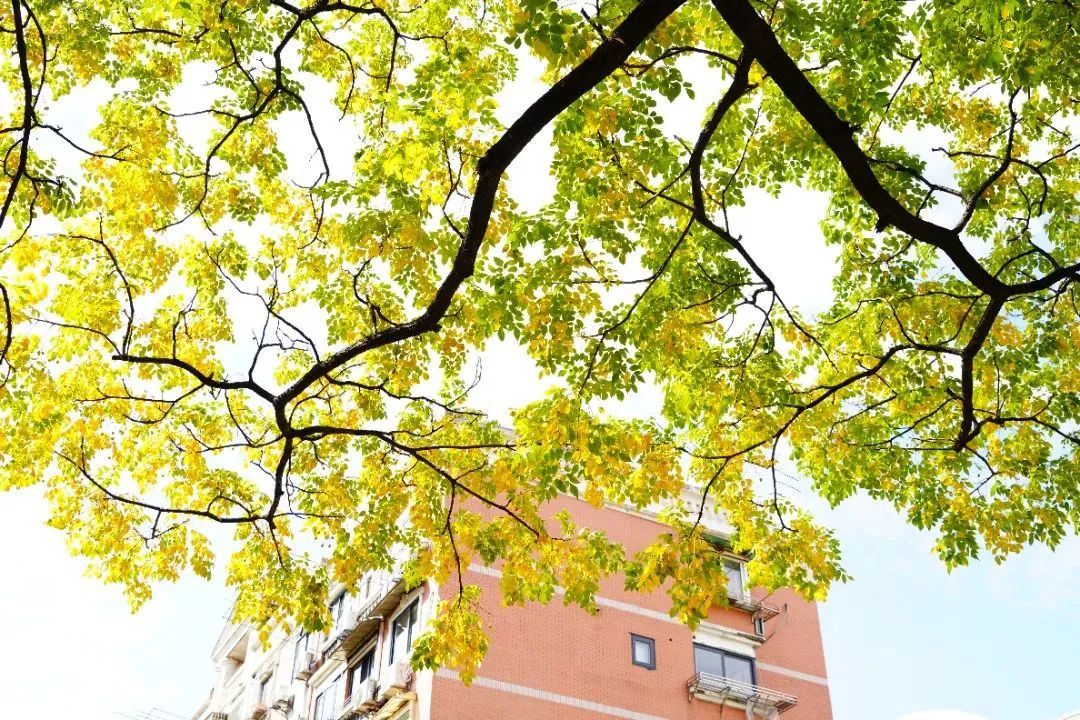 到了秋日时节,凉爽的秋风使得苦楝树的叶子渐渐变成金黄色,在秋天季节的渲染下,阳城路又会展现出一片秋意盎然。