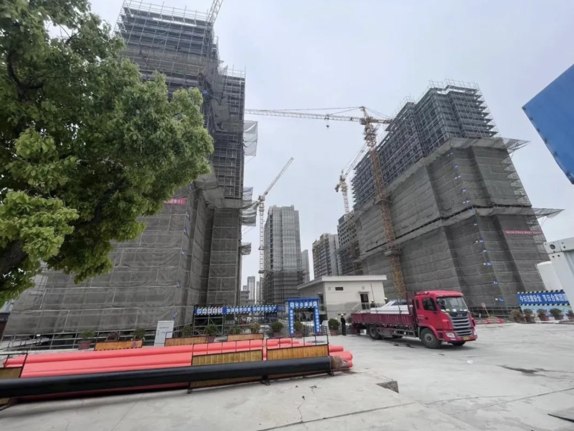 ▲锦港佳苑四期(奉贤区四团镇FXS5—0101单元39—01地块动迁安置房项目),主体施工阶段,主体工程完成95%,二结构完成80%。预计6月完成主体结构,8月完成二结构,10月完成室内外粉刷,24年2月基本完成室外总体。
