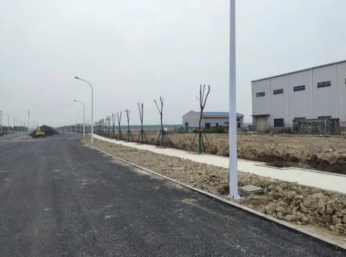 ▲海思路(东河路~海航路)道路新建工程,目前道路稀浆封层、粗粒式沥青砼摊铺施工13000平方米,完成100%;人行道路基础砼浇筑2434平方米,完成50%;路灯安装66座,完成100%;绿化乔木栽植300株,完成20%。工程总体完成80%。