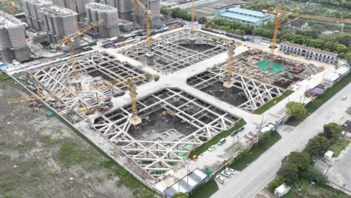 ▲鼎丰酱园(奉贤区南桥新城05单元02—03A地块项目),地下室主体施工阶段,栈桥拆除完成30%,地下室钢结构柱安装完成80%,地下室主体结构完成20%。