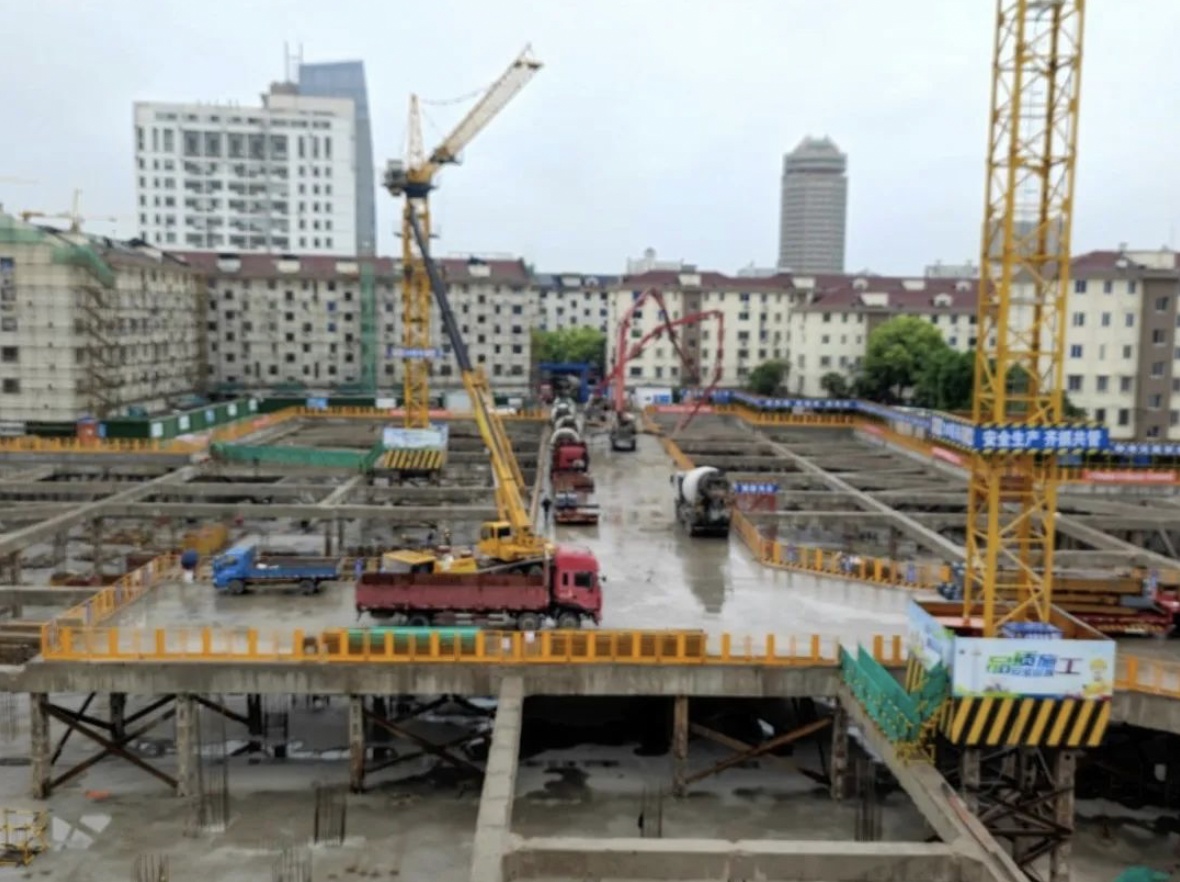 ▲奉贤区南桥新城12单元25A-01A地块保障性租赁住宅房工程,地下室主体施工阶段,土方开挖完成100%,垫层浇筑100%,筏板浇筑完成95%;2#4层PC安装叠合板,1#楼3层PC安装叠合板,3#楼2层楼板浇筑完成,4#首层墙柱钢筋绑扎,5#楼2层支模架搭设。