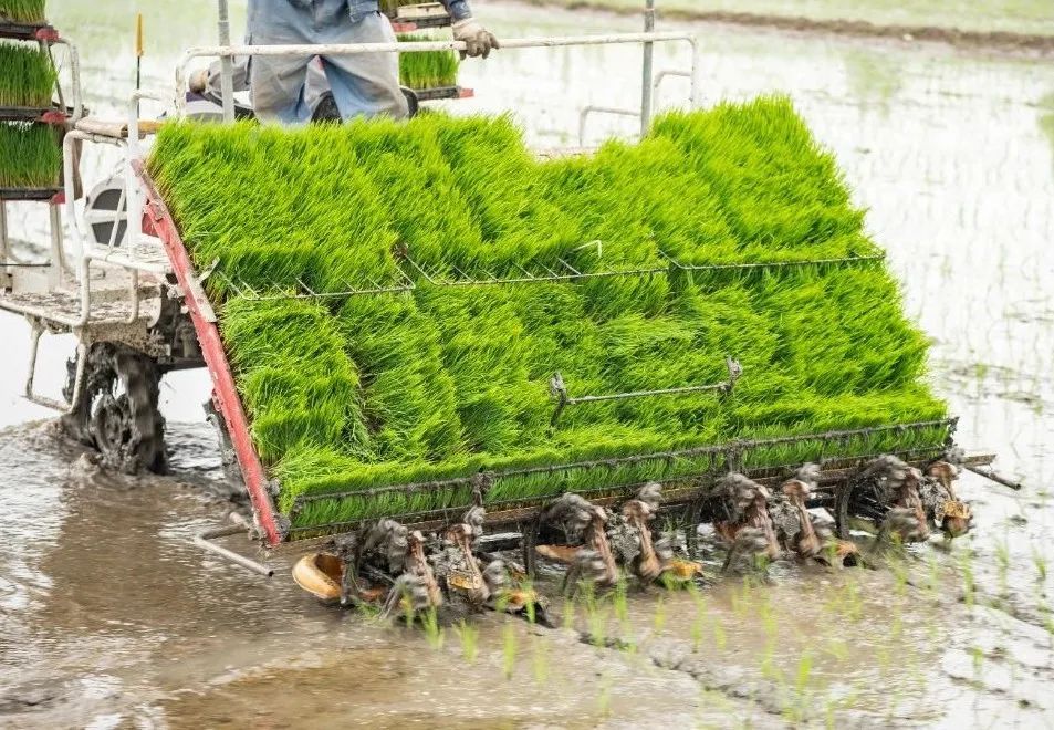 随着农事的推进,前期播种的国庆稻种子已长出小嫩芽成为一株幼苗,而机械化种植的运用也为“农时赛道”按下了“加速键”。
