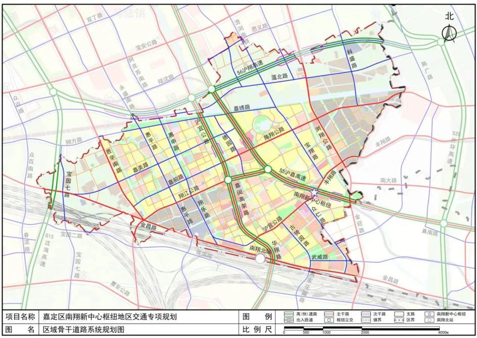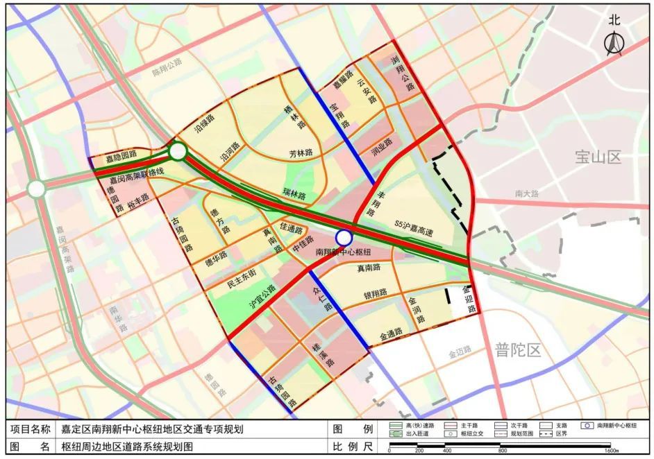 规划形成“四纵四横”的主干路格局,其中“四纵”分别为浏翔公路-金迎路、S5沪嘉快速路地面路、沪宜公路-华翔路和胜辛南路;“四横”分别为陈翔公路、翔江公路、沪宜公路-丰翔路和金昌路。