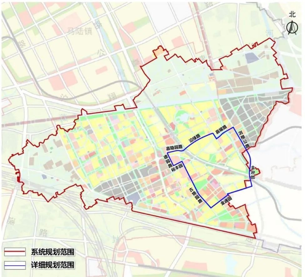 详细规划范围,即南翔新中心枢纽核心地区和要素调整范围,由金通路、古猗园路、裕丰路、德园路、嘉隐园路、沿绿路、宝翔路、嘉耀路、浏翔公路、金迎路围合形成,面积约4.2平方公里。