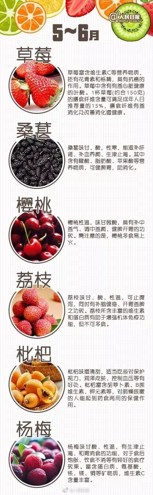 孔子曾说过“不时,不食”,意思是吃东西要按季节、按时令,什么季节吃什么东西。这一方面可以让我们一饱口腹之欲,另一方面,应季水果还可以更好地帮助我们调养身体。