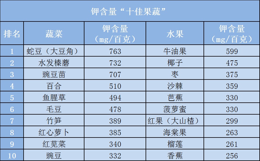 钾含量“十佳果蔬”
