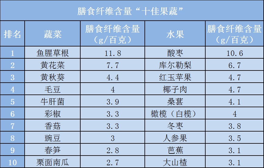 膳食纤维含量“十佳果蔬”