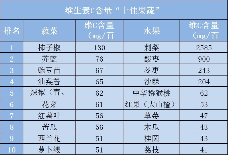 维生素C含量“十佳果蔬”