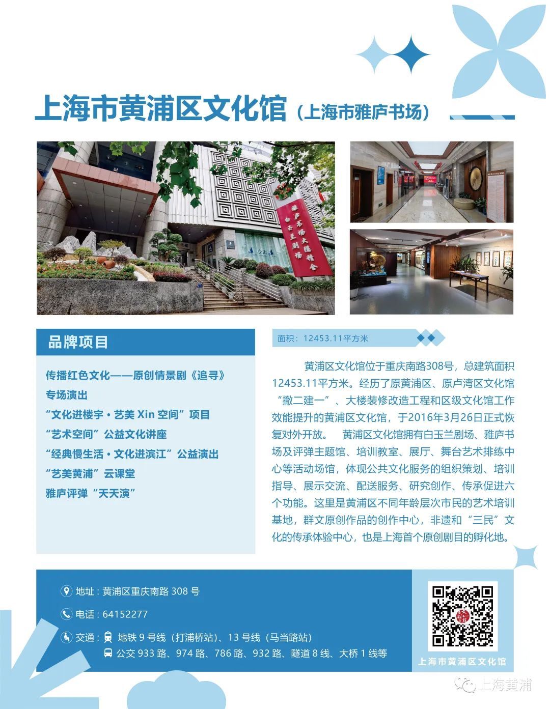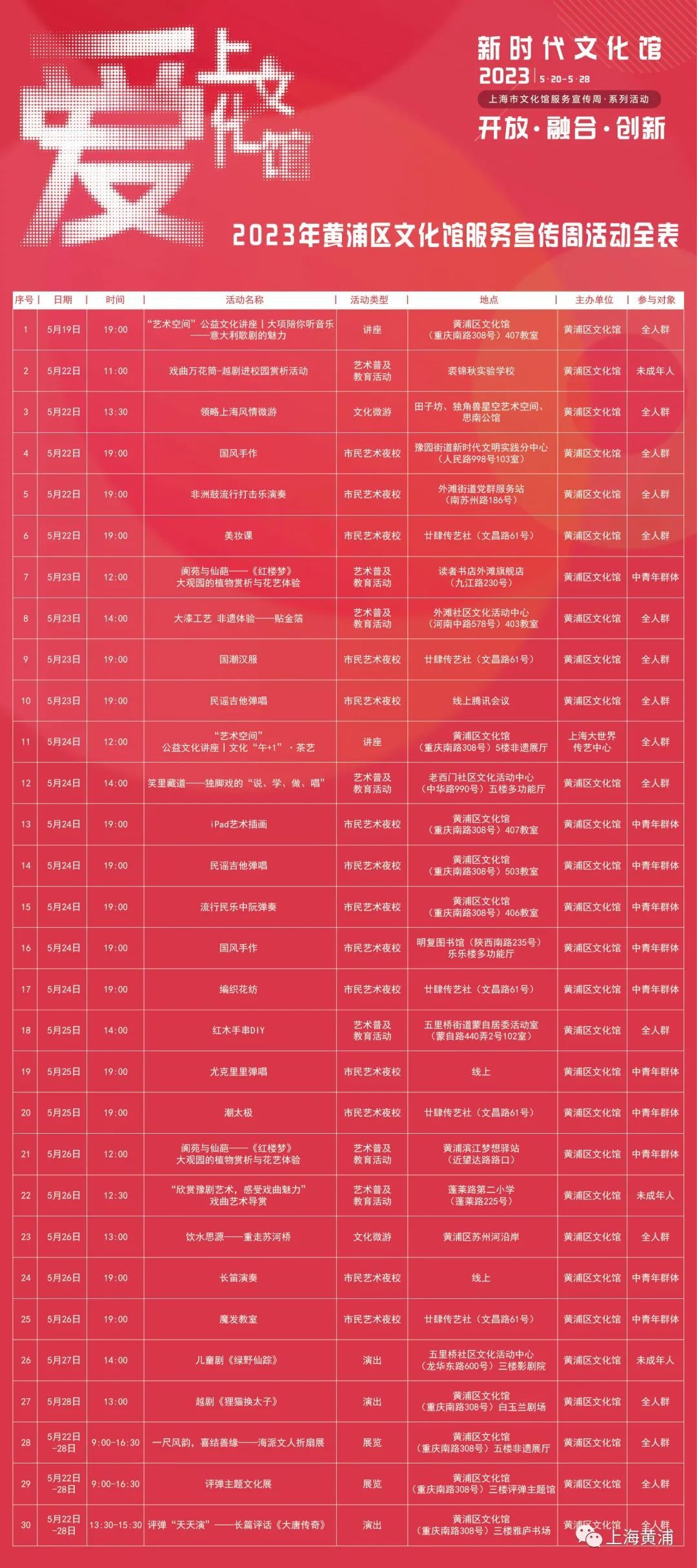 此外,区文化馆还将通过微信公众号、视频号、抖音号的平台,遴选优秀群文作品、“艺美黄浦”云课堂数字资源,开展数字资源线上服务,推动全面艺术普及。