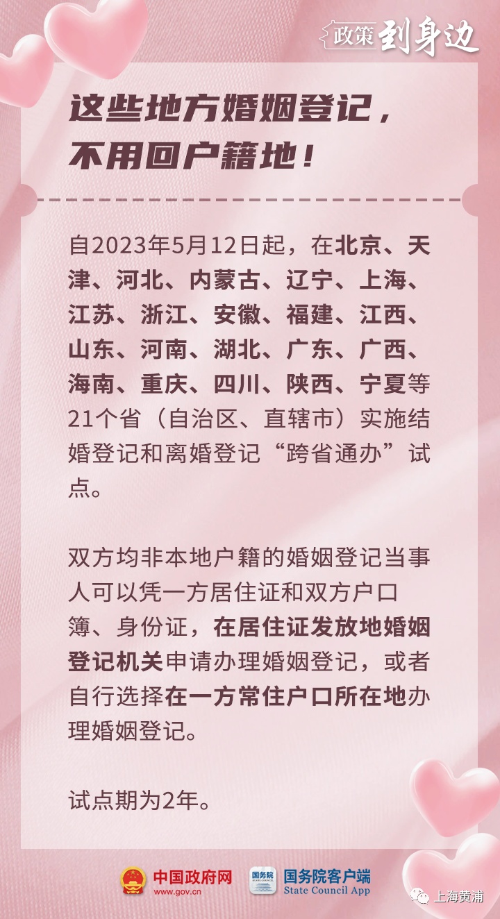 日前,国务院批复同意扩大内地居民婚姻登记“跨省通办”试点。