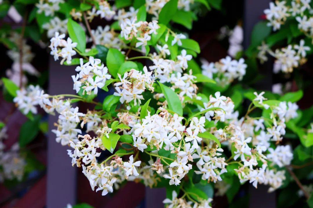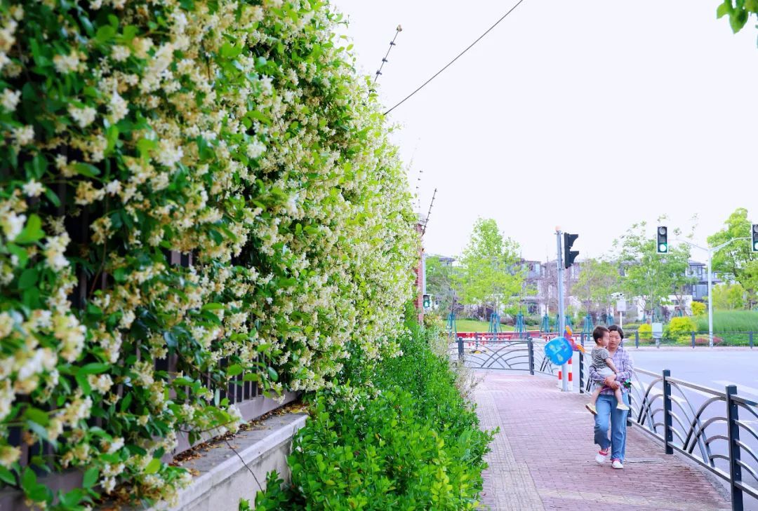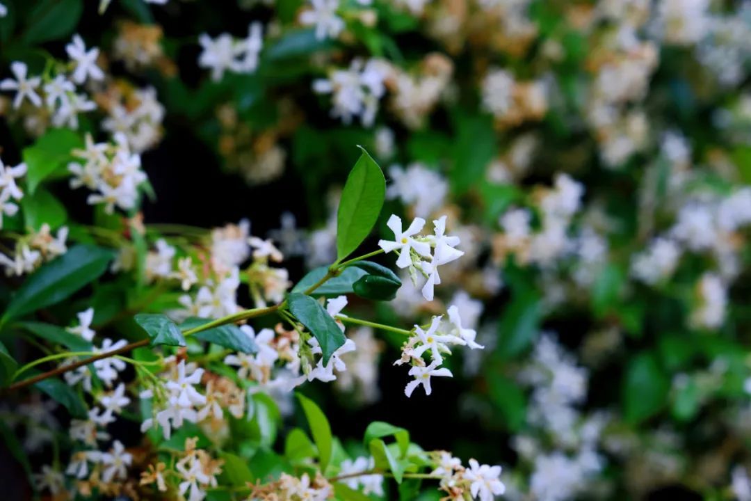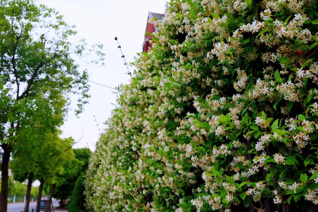 走在倪家墩路小区围墙外,一阵香味扑鼻而来,循着一路芬芳望去,猝不及防被一面梦幻婀娜的花墙晃了眼。这一面花墙便是风车茉莉,虽名字里带了“茉莉”,实则与茉莉不沾边。风车茉莉是夹竹桃科络石属,正式中文名是络石。它花香浓郁,耐寒又耐旱,不仅长势迅猛,是个爬墙小能手。