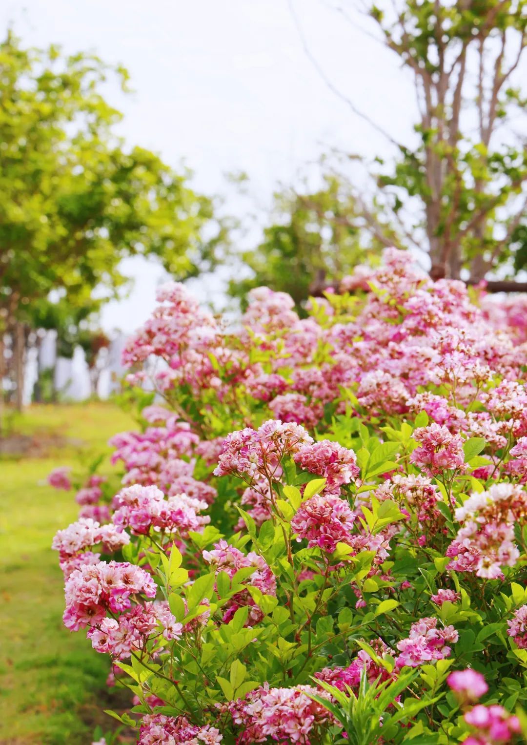 漫步在大居洞塔路和洞伟路的绿地上,看到大片盛放的丰花月季随风摇曳,弥漫着浪漫气息。有别于家庭园艺追求大花、花型别致的月季品种,绿地景观大面积种植则更注重群开观赏效果、更长的赏花期,以及低维护的月季品种,因此丰花月季是不错的选择。