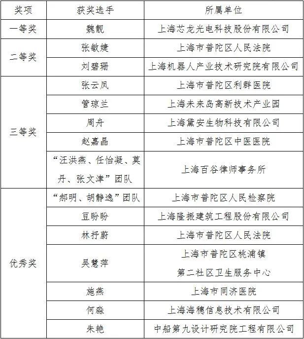 2023年普陀区“法护芳华,知创普陀”知识产权优秀案例评选活动获奖名单