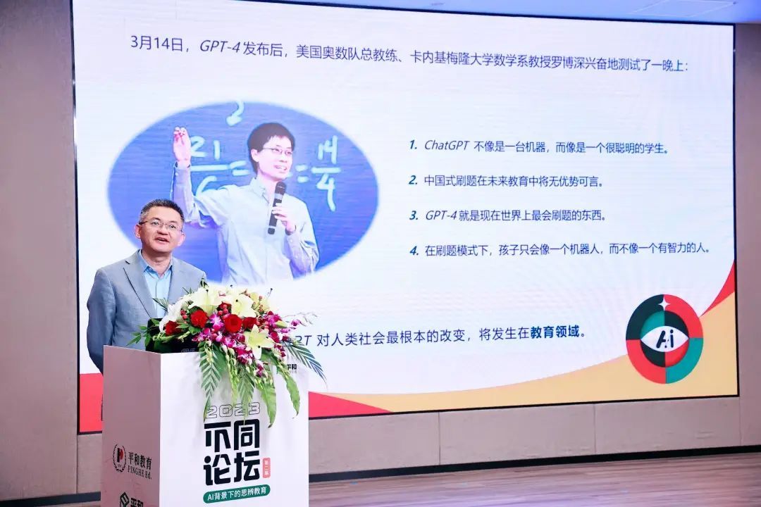5月18日-19日,第二届平和“不同”论坛在上海市民办平和学校举行,首日主论坛以“AI背景下的思辨教育”为主题。众多学者大咖、校长、老师汇聚在上海市民办平和学校,在这所充满“思辨力”的校园里,观摩了解一所沪上中小学校园里的哲学课程、社团活动,热议ChatGPT时代的哲学教育,探讨思辨教育的挑战与未来。