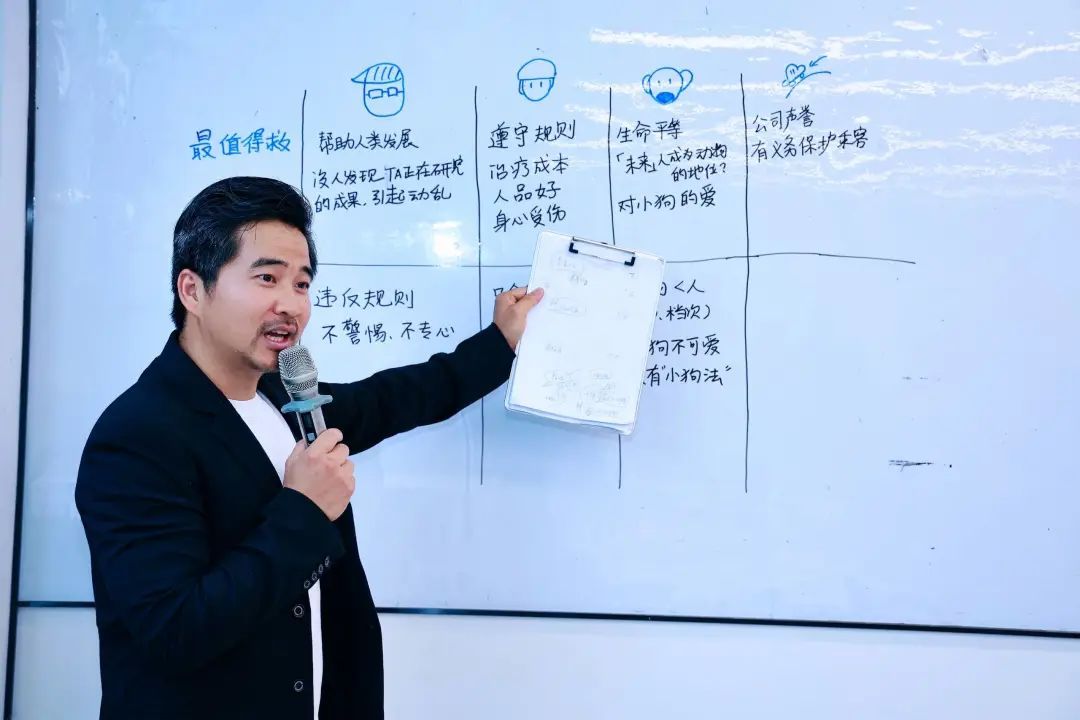 “我要反驳刚才的观点,小狗也应该被救,万一有一天小狗成了超人类物种,养着人类呢?”