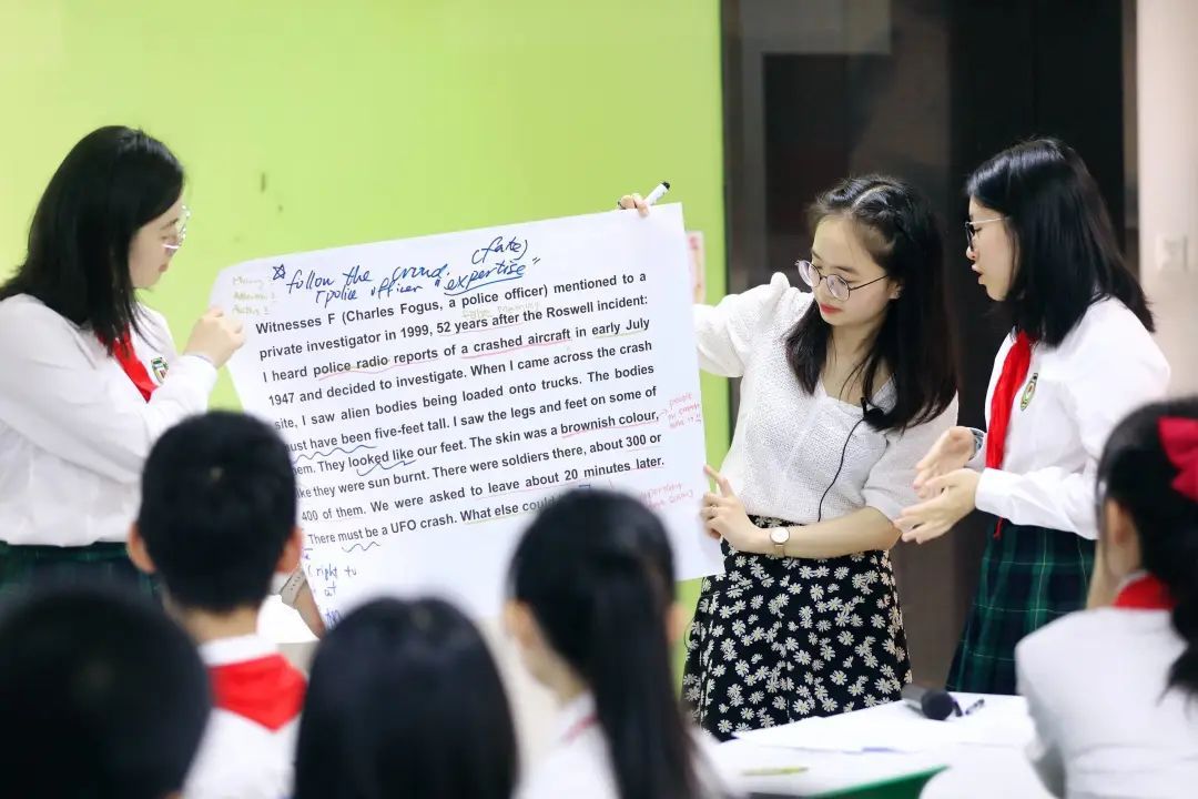 与此同时,平和校园里,三节融入“思辨素养”的课堂——班会课、高中TOK课程和英语课展示也在同步进行。
