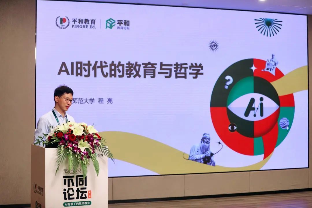 现场,华东师范大学教育学系副系主任程亮教授围绕“AI时代的教育与哲学”,分享了他对AI时代究竟意味着什么、AI时代的教育样态,以及AI时代的教育哲学的思考。
