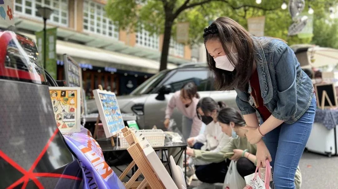 叶晓韵说,这条家门口的步行街,让自己灵感涌动。“本身我就住在大学路附近,这里整体的氛围、潮流,都非常吸引我们。今天正好有这样一个机会,所以我就参与一下,感受摆摊的乐趣。”