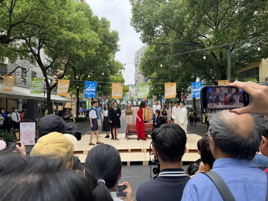 开街当天,五角场街道联合知名企业举办了以“后备箱市集×扑通扑通的青春”为主题的大学路限时步行街活动。