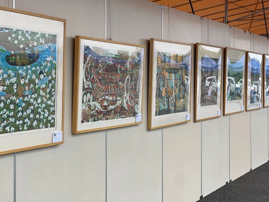 丝网版画、海派剪纸、传统国画……现场的渡口文化艺术展从不同角度展示了车墩渡口文化遗址的沧桑历史和风景优美的松南郊野公园。在非遗集市上,游客们亲手体验丝网版画等非遗项目,现场领略艺术之美。“这边不仅可以欣赏艺术作品,还有桑葚、小番茄等农产品,听说都是早上现摘的,我刚刚去试吃了一下,真的很甜。”游客张晶说。