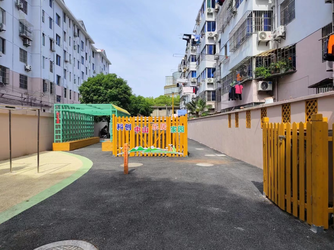 天虹六村小区建于上世纪90年代,共20个楼道约240户居民。因小区规模较小且修建年代早,建造初期未规划设置停车位。居民下班回小区后只能“见缝插针”,不但影响车辆出行,也存在安全隐患。2022年,居民区借助《中山街道住宅小区公共区域公共设施修缮》的政策,由居民自管小组牵头,启动业委会自治模式,在征询全体业主意见后,街道财政出资“补贴”,完成了对道路、空地、灌木丛等空间的微改造,为老小区开辟出了50个停车位,还新建了一处名为“天虹源”的公共空间,占地面积580余平方米,并在小区门口安装了机动车道闸。