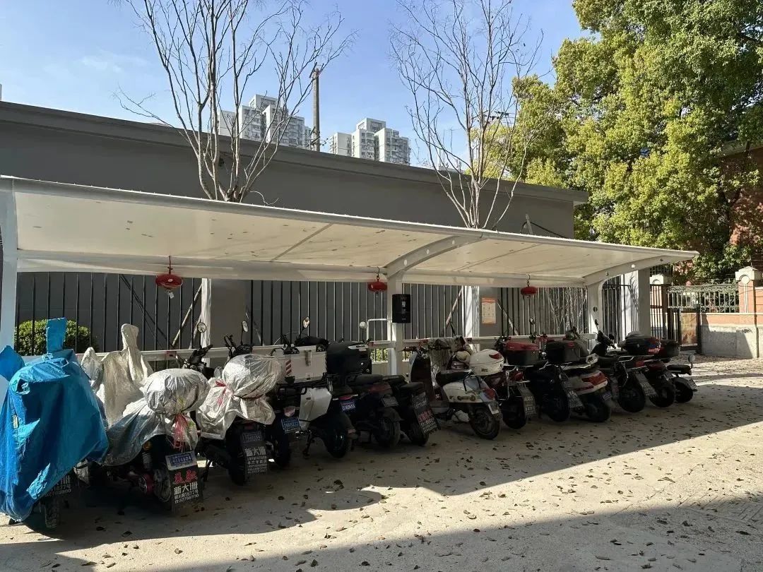 今年以来,小区持续挖潜,在街道平安办的支持下引入第三方平台“壁虎充电”,多方共建武宁路74弄双号非机动车车棚,该车棚不仅可同时供10辆非机动车充电,而且在车棚上方还安装了多处消防配套设施,提升安全性。