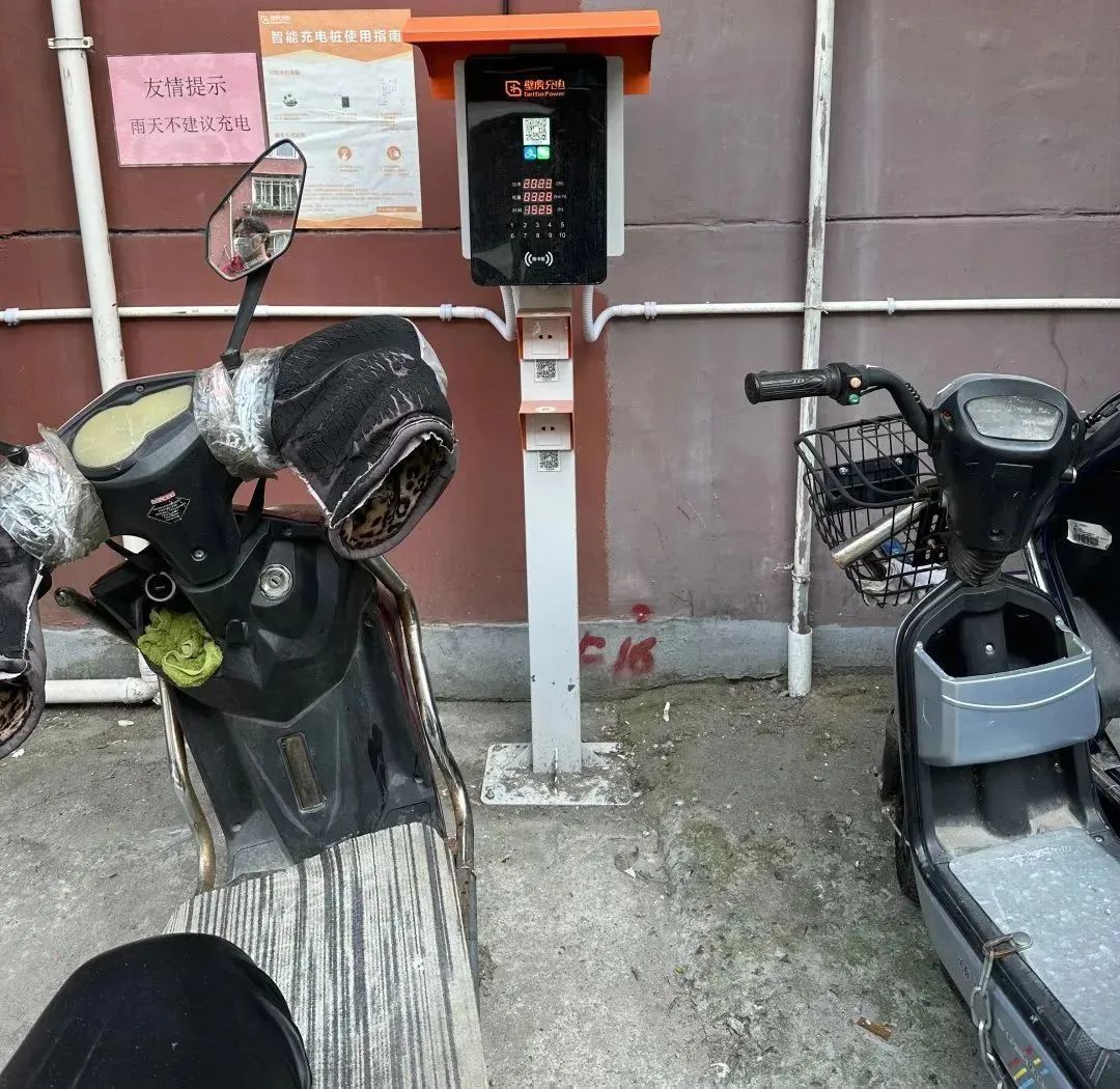 同样受“飞线”充电困扰的还有秋水云庐小区,小区的地下车库不仅停放供不应求,还没有充电车棚。针对停车难题,居民区在靠近澳门路的小区门岗处增设一处非机动车停放区域;针对充电难问题,居民区通过党建联建,同共建单位一起为小区免费安装了电动自行车智能充电设备,基本实现飞线清零,解决了居民安全充电问题。
