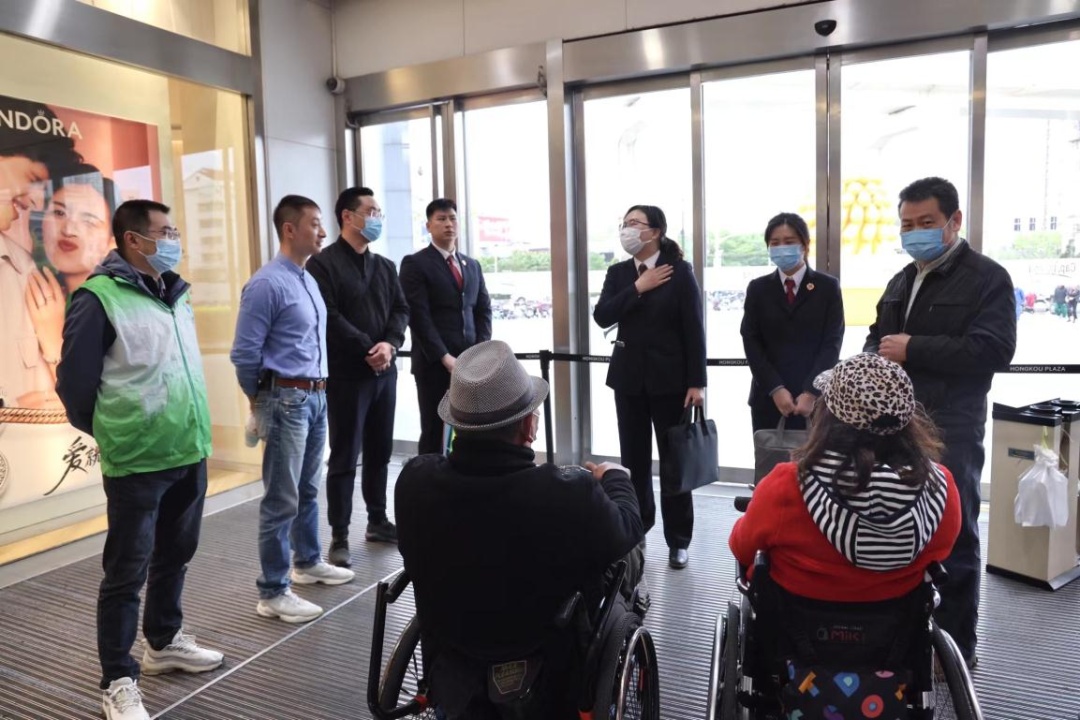 2023年4月,根据“以人为本,换位思考,尊重使用者体验感受”原则,虹口区检察院邀请区政协委员、区残联、市残联无障碍督导志愿者、“益心为公”志愿者对无障碍设施改造落实情况现场回访,对具有客观改造困难的点位进行勘验和论证,邀请残疾人士代表对新改建的无障碍设施进行体验和评估,并将改进建议重新移送相关部门继续落实整改。