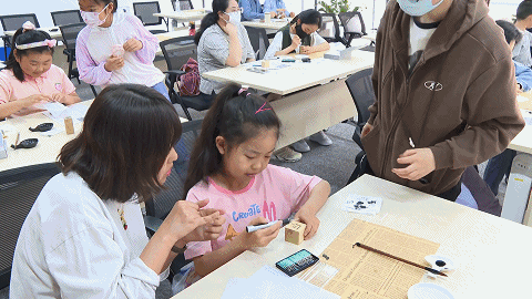 奉贤区博物馆多功能教室里,小朋友们正认真地挑选着自己心仪的图样和印章原料。“我们准备的甲骨文和小篆样本,是生肖和百家姓这两个大类主题。”上海真静传统木作博物馆工作人员张紫千介绍道,印章篆刻所需的工具有铅笔橡皮、连史纸、墨水毛笔、木章原料以及电笔和转换头等。参加活动的小朋友在了解甲骨文的历史、篆刻的手法后,就可以亲手制作一枚属于自己的印章。“希望市民朋友们能够在手做木章的过程中,对甲骨文的了解更加深入,也能够爱上篆刻这门传统手艺。”