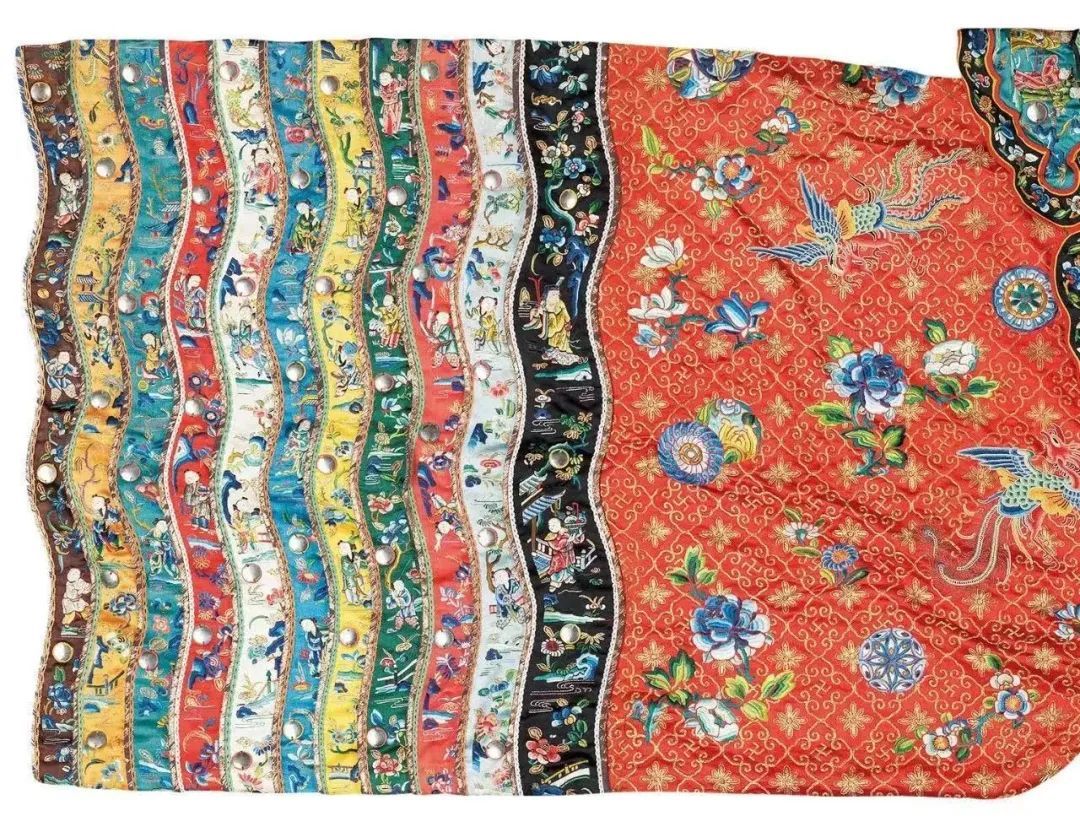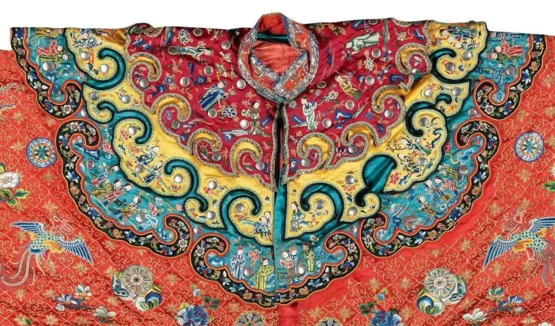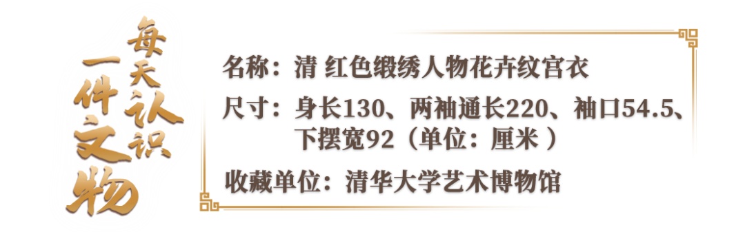 红色缎绣人物花卉纹宫衣