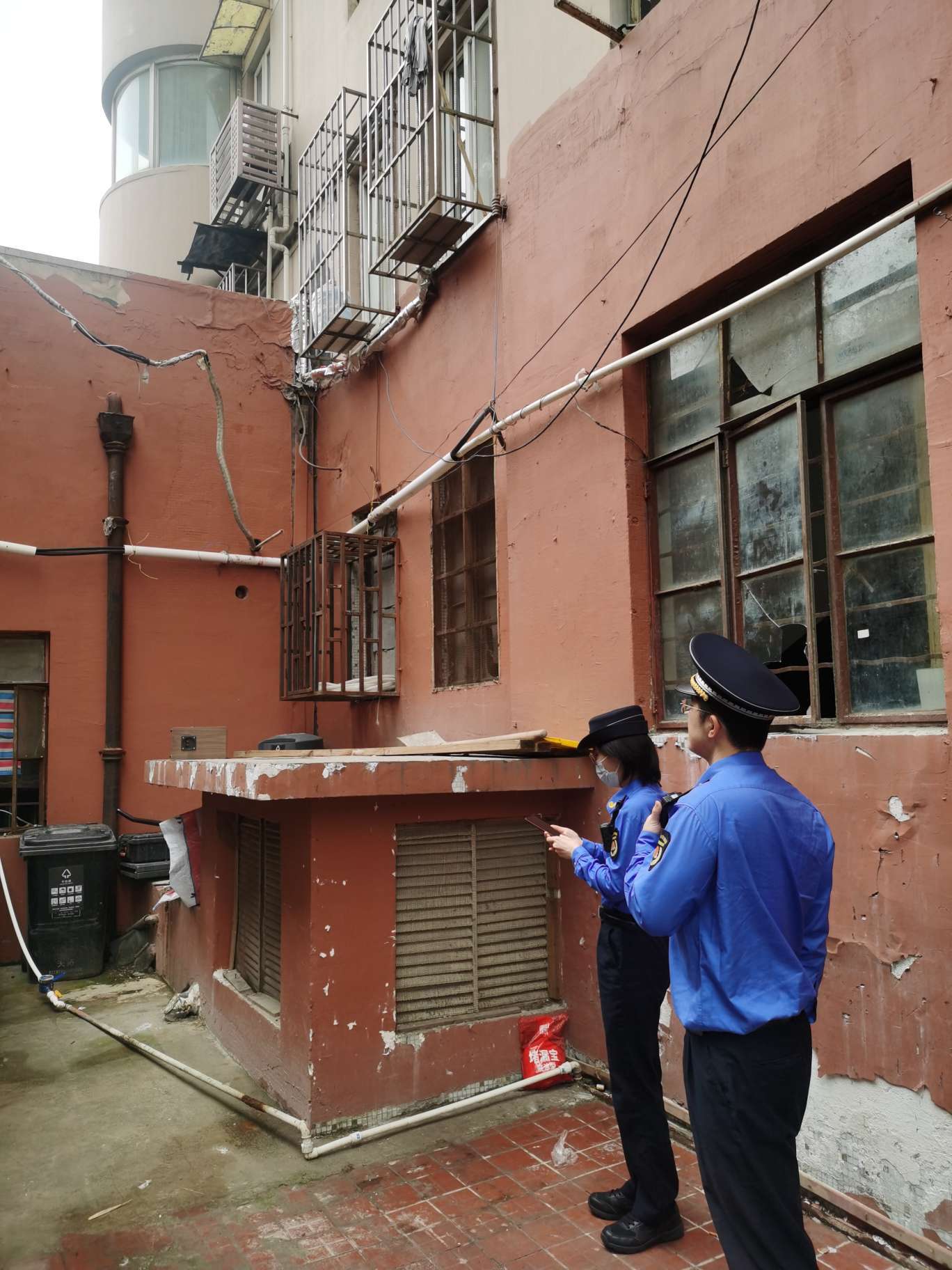 今年4月中旬,江宁路街道综合行政执法队接到居民投诉,称武定路某小区内存在违法搭建,因该违建与居民楼底层的配电间相连,严重影响了配电间的通风,存在严重安全隐患。执法队员随即前往现场调查。