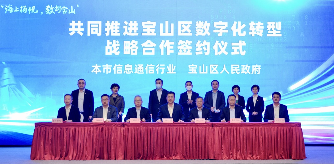 宝山区人民政府与上海市通信管理局、上海电信、上海移动、上海联通、上海铁塔、东方有线分别签订《共同推进上海市宝山区数字化转型战略合作框架协议》。将进一步加大5G、工业互联网等新型基础设施建设和应用,壮大数字经济核心产业,推动宝山区城市数字化转型向纵深发展。
