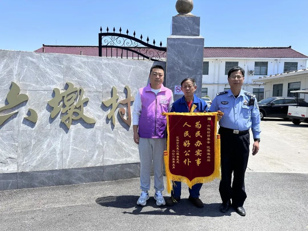 吴阿婆一家为表达对两位巡查员见义勇为的感激之情,特意制作了一面锦旗专程送到村委会。