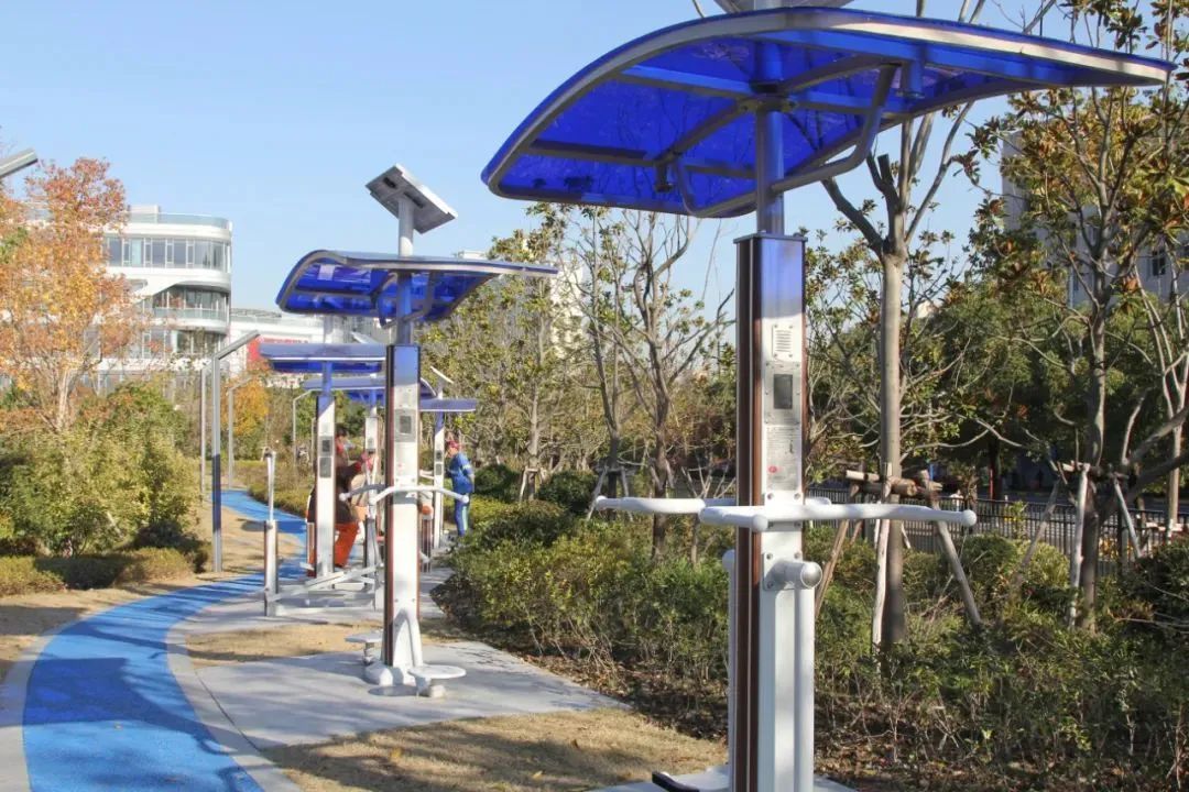 古美公园健身步道位于平吉路799号的古美公园内,3条健身步道总长度近1500米,分别为北侧步道、南侧步道和环形步道,步道旁设置了健身须知标识牌,串联起近10万平方米的古美公园内的湿地涵养区、生态密林区、入口过渡区、环湖活动区、文化展示区、运动场地区6个功能区。
