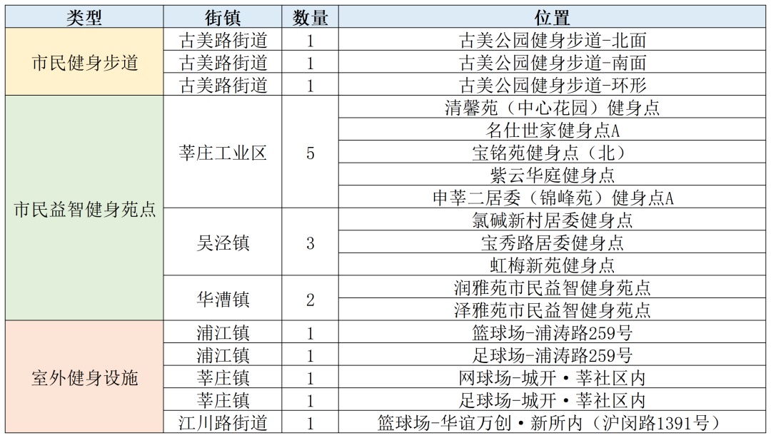 位于浦江镇浦涛路259号的浦涛市民健身中心已经对外开放,设有户外足球场、户外篮球场、乒乓房、武术馆、健身房、形体房、棋类室等体育健身配套空间和设施。