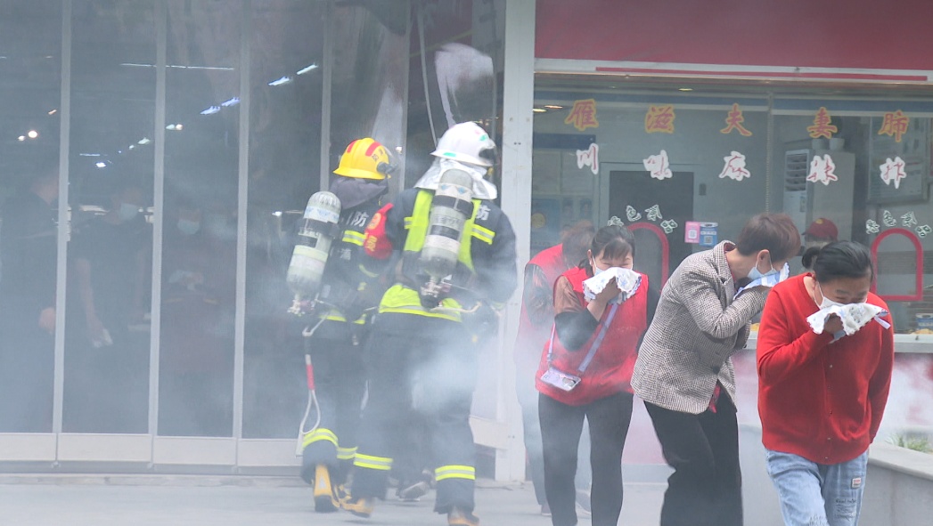 演练活动模拟了非机动车库内电瓶车发生自燃,菜市场巡查人员发现后立即启动消防应急预案、组织保安等现场工作人员使用消火栓灭火自救,并拨打了消防报警电话,同时立刻引导市场内商户和顾客快速、安全、有序疏散逃生,在各方的努力协作下,起火点被扑灭,火情得到控制。