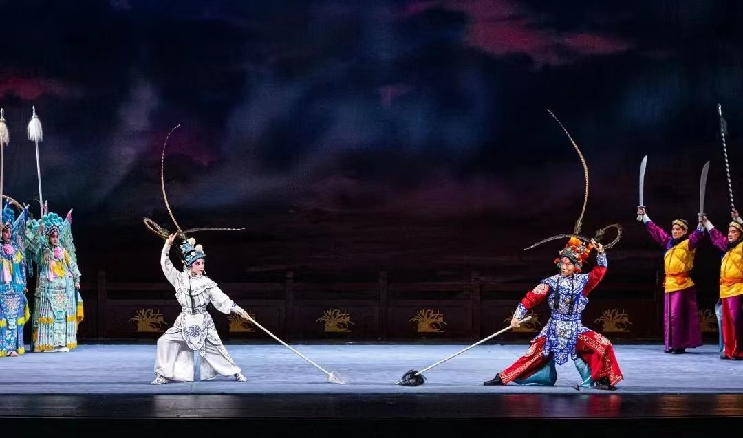 全剧共有十场戏,文戏武戏兼备,塑造出了祖孙四代不同人物的鲜明个性。忠君爱国、勇担责任的佘太君,智勇双全、英姿绝代的穆桂英,豪爽泼辣、坦言直率的杨七娘,机灵活泼、无所畏惧的杨文广……第十场戏中,当杨门女将终寻得栈道,奇袭敌营时,武戏众多,饰演穆桂英的董晶、饰演杨七娘的林子琪、饰演杨文广的张展菲均展示了高超的技巧水平,台下观众叫好声不断。谈及在诠释穆桂英这一重要角色上的困难,董晶说:“穆桂英既能文又能武,十分考验专业演员的功底。因为我一直主要是唱青衣的,但这个角色却是青衣和刀马旦兼并的戏,所以我在戏外花费了很多时间去练习基本功。”张展菲此次是带伤上场,去年12月演出之时,她大腿内侧撕裂。在今年演出的时候,骶骨又摔到骨折。张展菲表示:“尽管如此,出于对杨文广角色的喜爱,我本人和该角色的契合度以及院内对我的信任和期待,我依然选择坚持演出,希望尽可能在观众看不出我受伤的情况下把杨文广这个角色诠释到位。”伴随着佘太君“歇兵三日,凯旋还朝”的唱词,整场演出落下了帷幕。虽然演出已经结束,但台下观众仍意犹未尽,纷纷喊道:“唱得太好了!”“再来一个!”为了响应观众的热情,在剧中饰演佘太君的董源返场献唱了京剧《红灯记》片段,博得了观众雷鸣般的掌声。