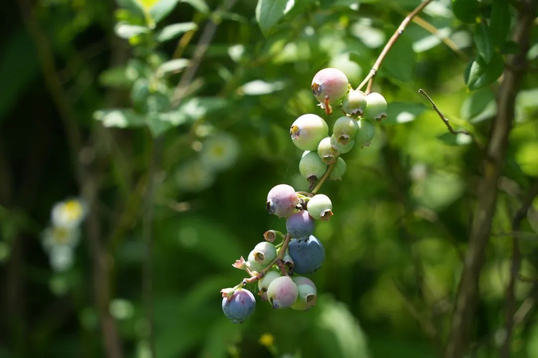 走进位于张马村的浦江蓝生态农场,就能看见一片片田地内种植着蓝莓树,蓝莓树的个子本就比较矮小,枝头上还缀满了果实,更是压得枝丫直不起腰,只得凑近才能瞧得真切。眼下距离早熟品种蓝莓成熟还有一周的时间,枝头上蓝莓有大有小,未成熟的青色蓝莓还像一颗小豌豆似的,一旁“急性子”的大家伙已经先一步变得丰腴又靓丽,颇有“浆果皇后”的风姿。捻一颗下来尝尝味道,酸甜可口,咬破表皮的刹那汁水四溢,令人胃口大涨!