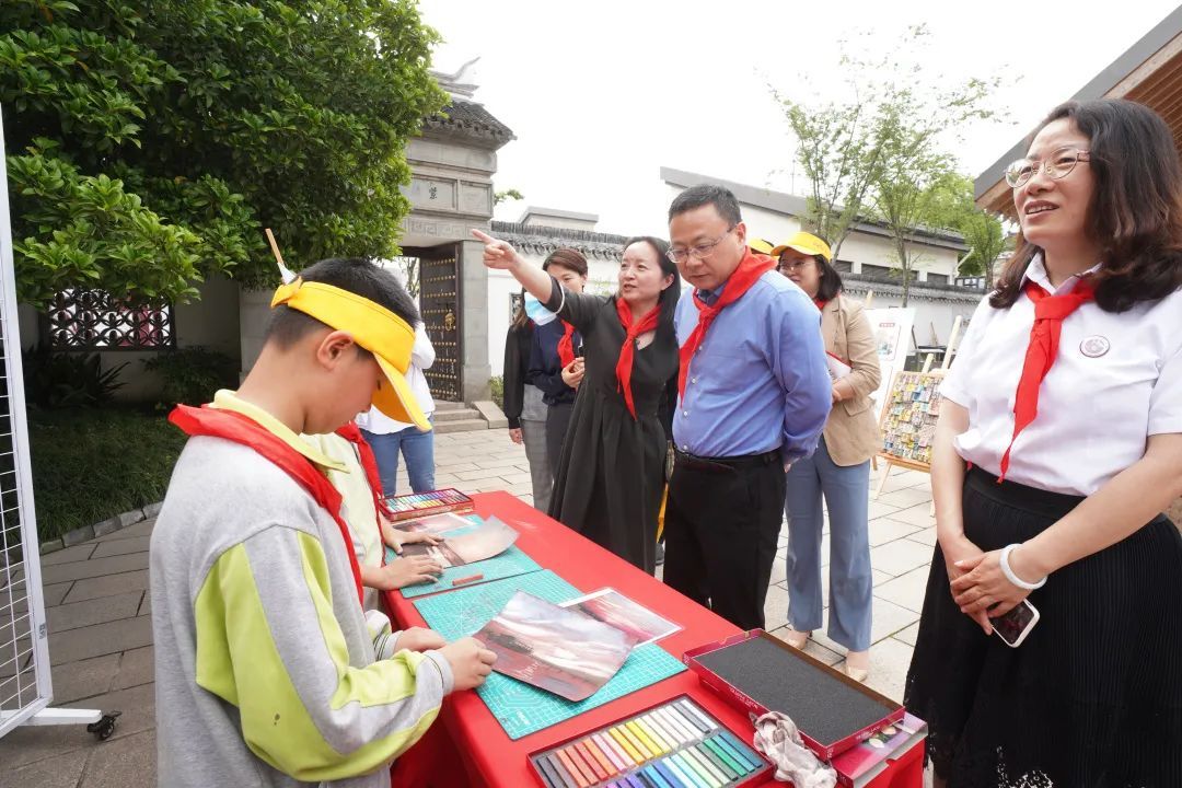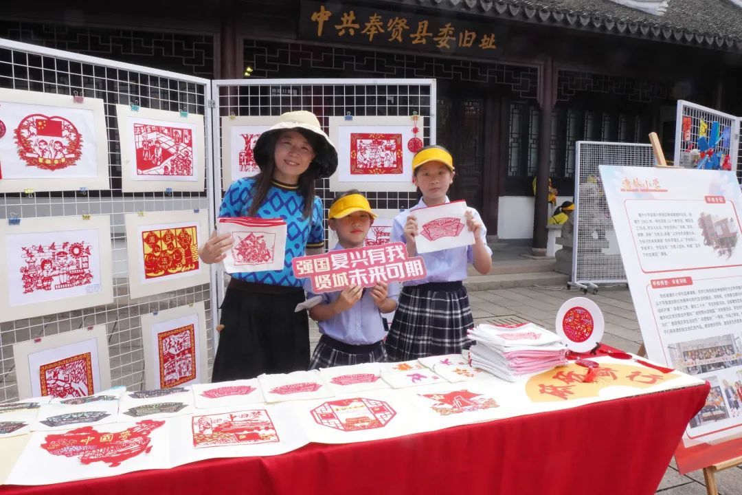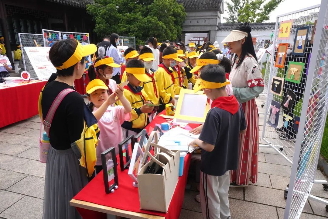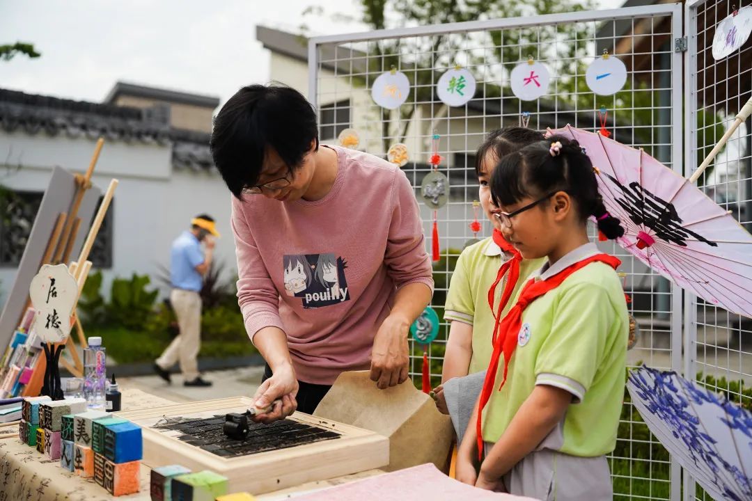 “红色传承”文化展现场,6个展区紧密相连,古法造纸、粉彩绘画、香囊DIY、创意乐高、纸艺汉服、非遗刻纸在各展台亮相。现场处处洋溢着传统工艺的魅力,传统文化的种子在孩子心中生根发芽。