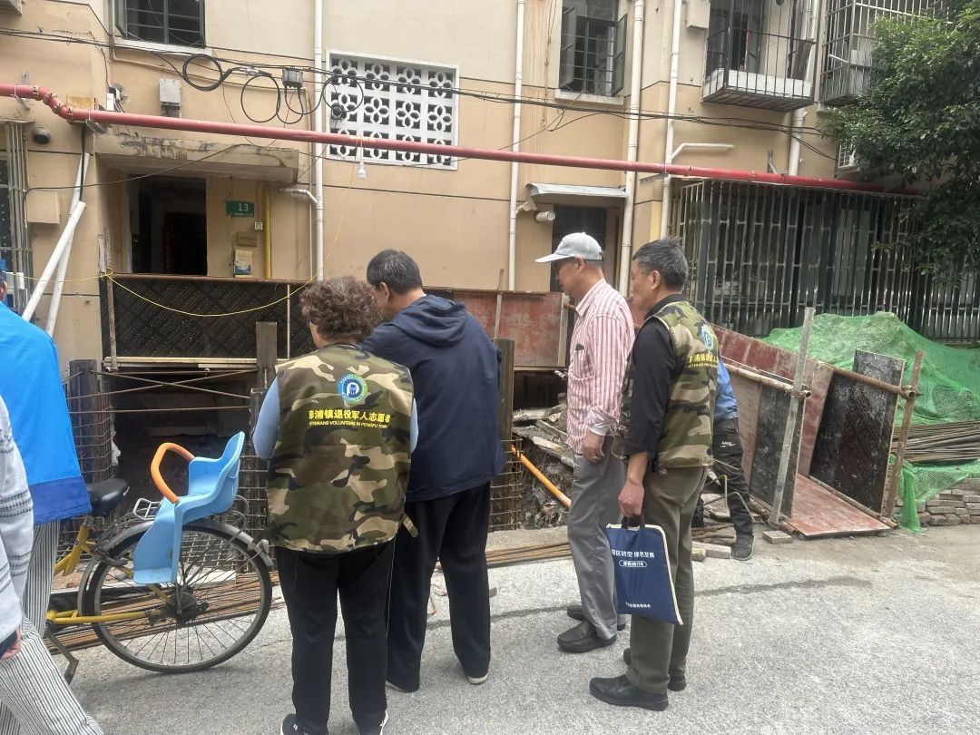 为督促彭浦镇万荣新苑居民区“加装电梯”建筑工地文明施工,近日,万荣新苑退役军人服务站成立“绿色卫士”文明施工志愿者队伍。