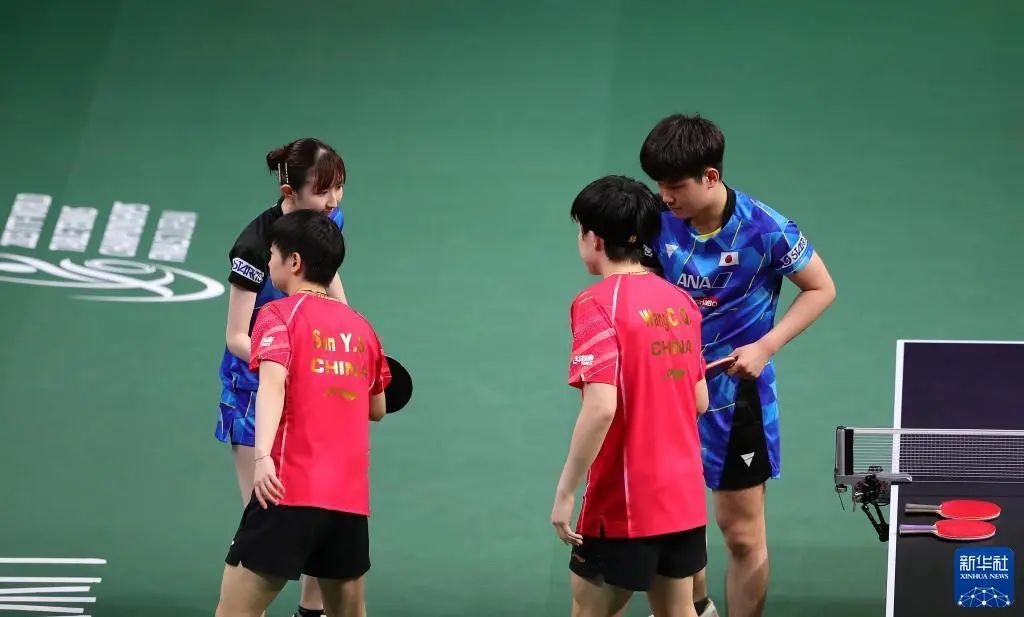 与两年前的休斯敦世乒赛一样,两对组合再度在决赛中相遇。首局双方战至6平后,王楚钦/孙颖莎连拿5分,以11:6先下一城。第二局开局国乒组合气势如虹,连得6分,随后以11:2轻松再胜一局。第三局张本智和/早田希娜3:4落后时请求暂停,但重新登场后他们依然办法不多,王楚钦/孙颖莎以11:7胜出,锁定冠军。