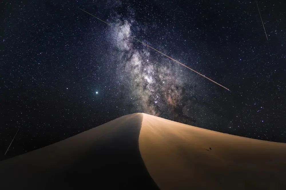 清澈的月牙泉静卧在起伏的鸣沙山中,这里是敦煌的标志性景色。每年的5-9月,不少小伙伴选择来这里露营,在沙漠中观星。