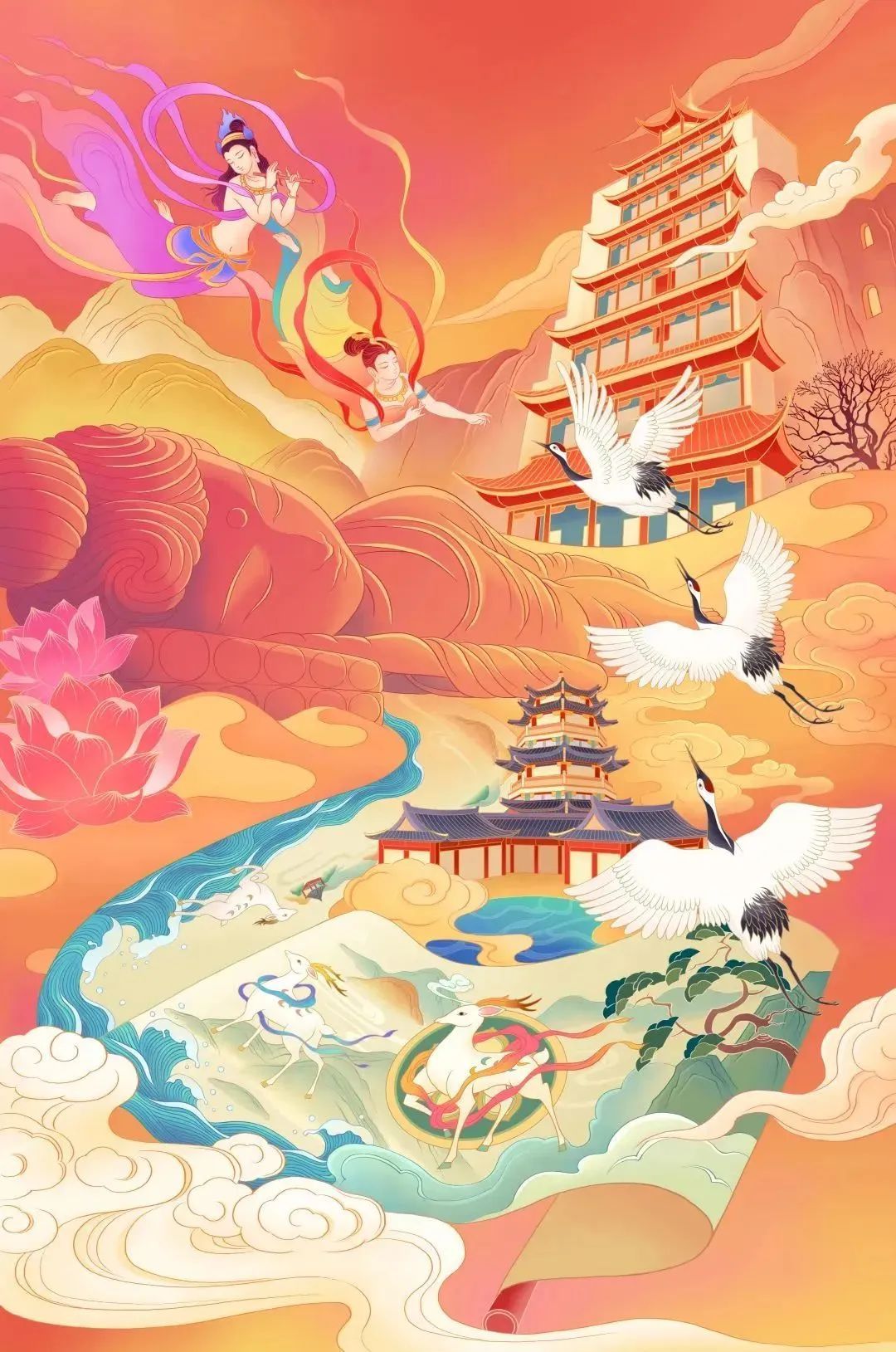 徜徉在莫高窟里,你可以通过无数飞天营造出的梦境般的画面,感受敦煌文化宝藏的辉煌及中国的灿烂文化。