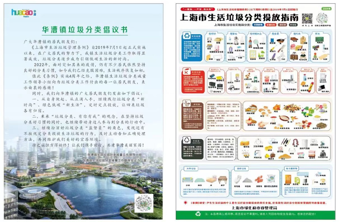 “您好,这是华漕制作的垃圾分类知识宣传手册,请参考对照做好垃圾分类工作,严格遵守上海市生活垃圾管理条例,践行垃圾分类新时尚。”