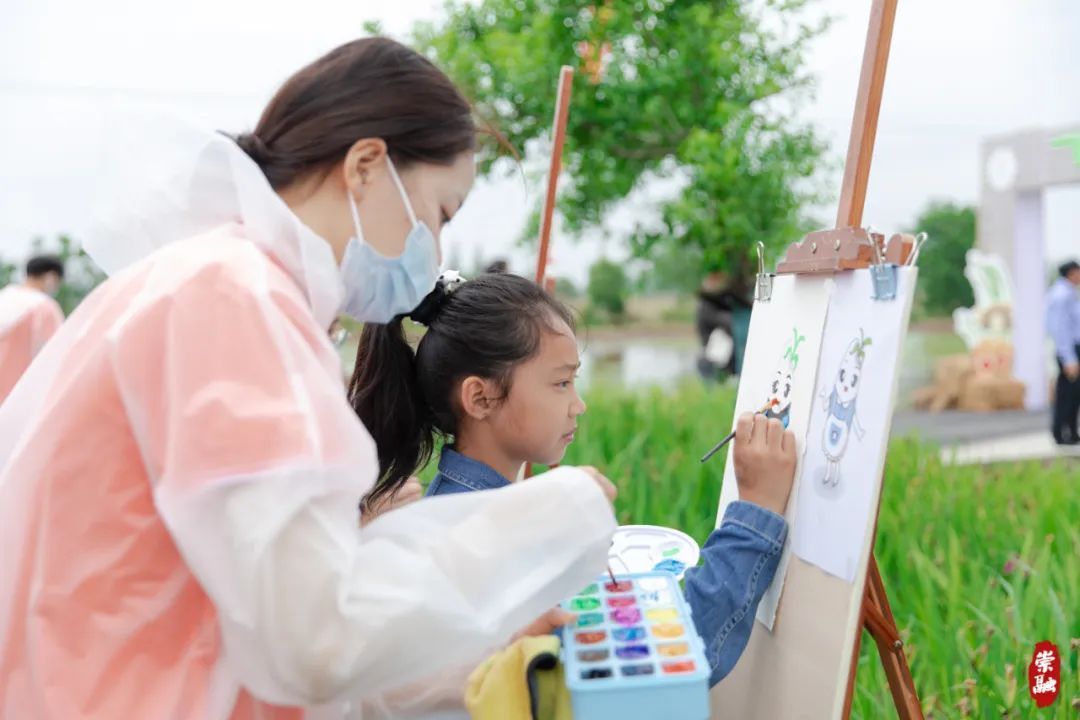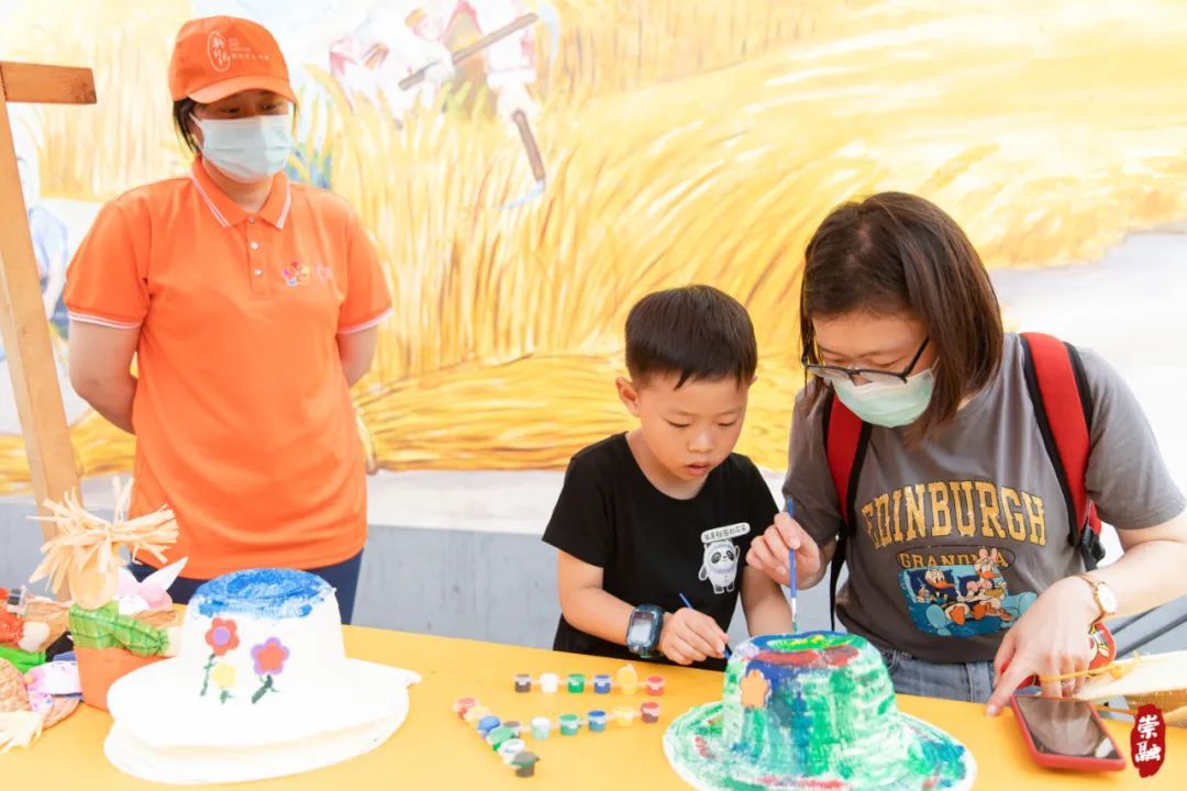活动现场,位于会场道路两侧的特色集市人气满满,手工编织玩偶、手工制作稻草人、稻米文化展示、麋鹿主题文创作品展示等摊位前人头攒动。绘画、彩绘草帽等DIY活动,吸引了不少市民体验参与。