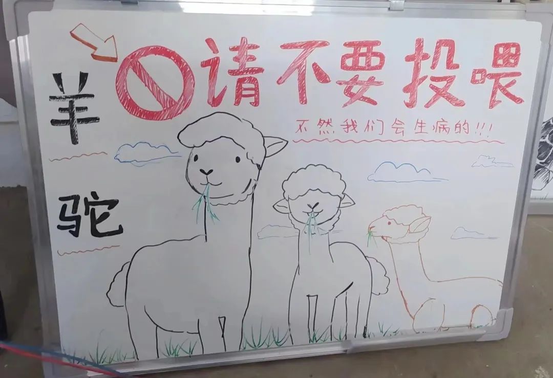 不仅通过卡通画的形式把动物的信息有趣地呈现出来,还不忘加上一些文明标语,提醒游客文明参观。