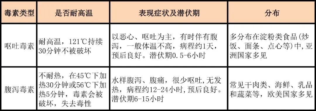 对高温和酸碱环境耐受性强,还是热稳定毒素。且温度越高,微生物生长越迅速,毒素产生也越快,其在食品加工过程中不易被分解,能引起患者恶心、呕吐等病症。