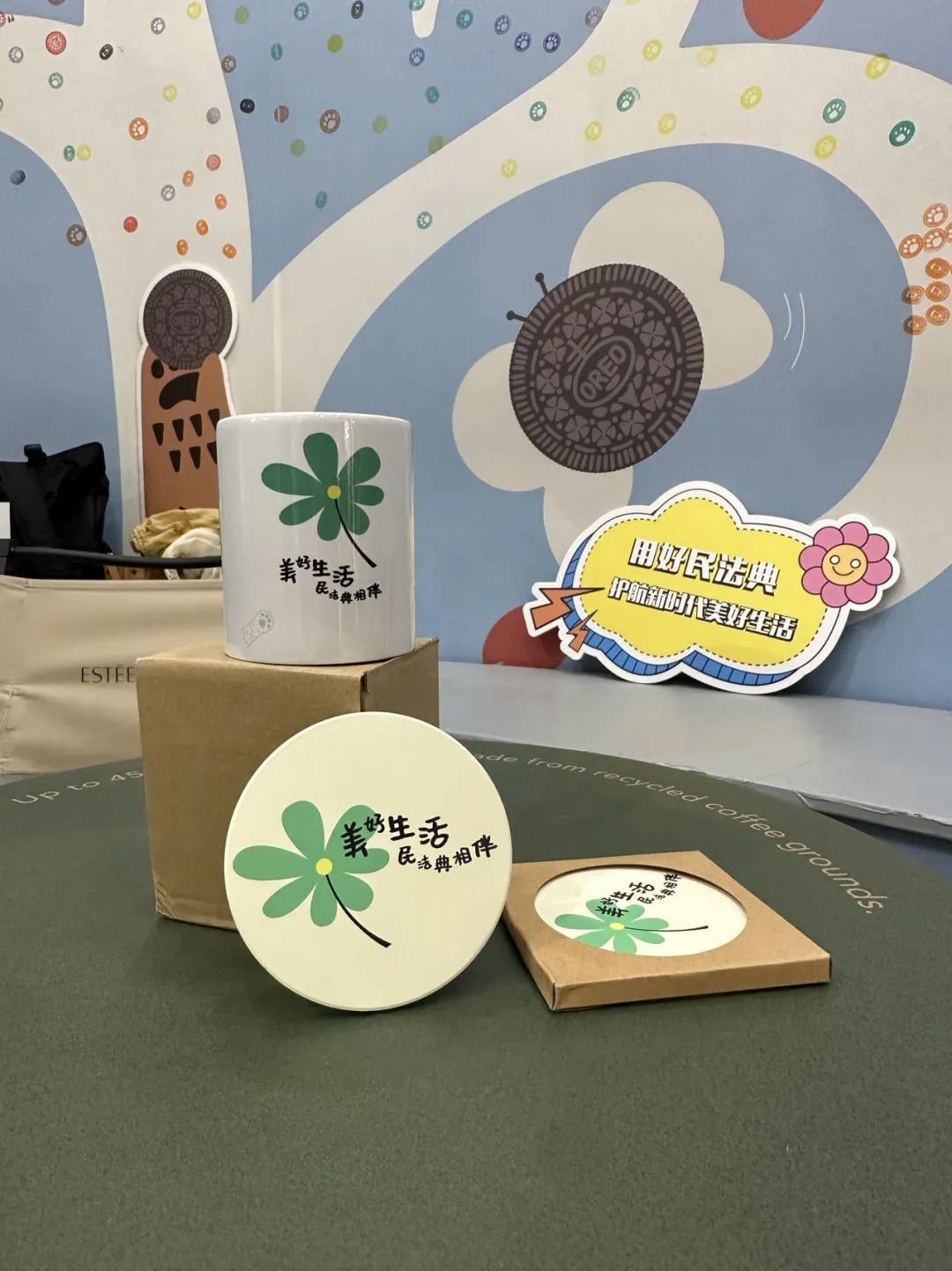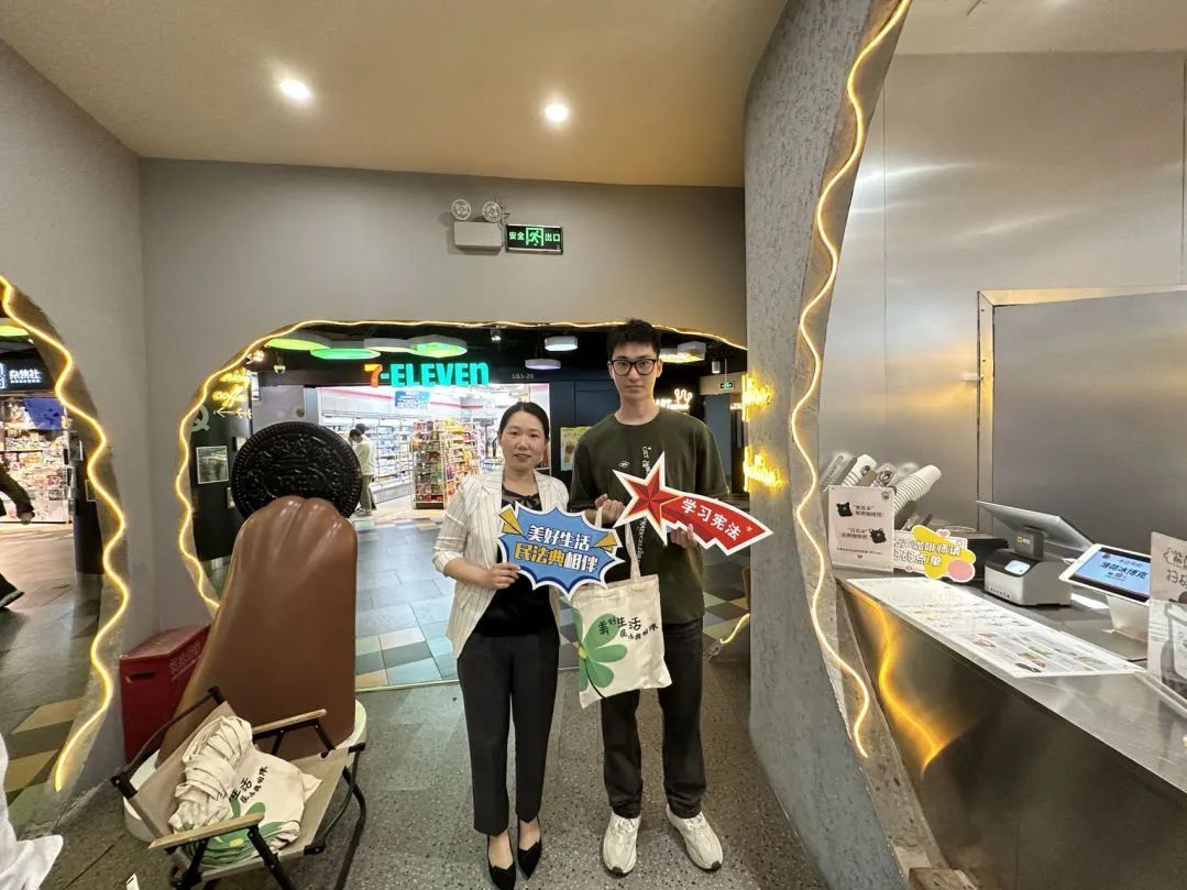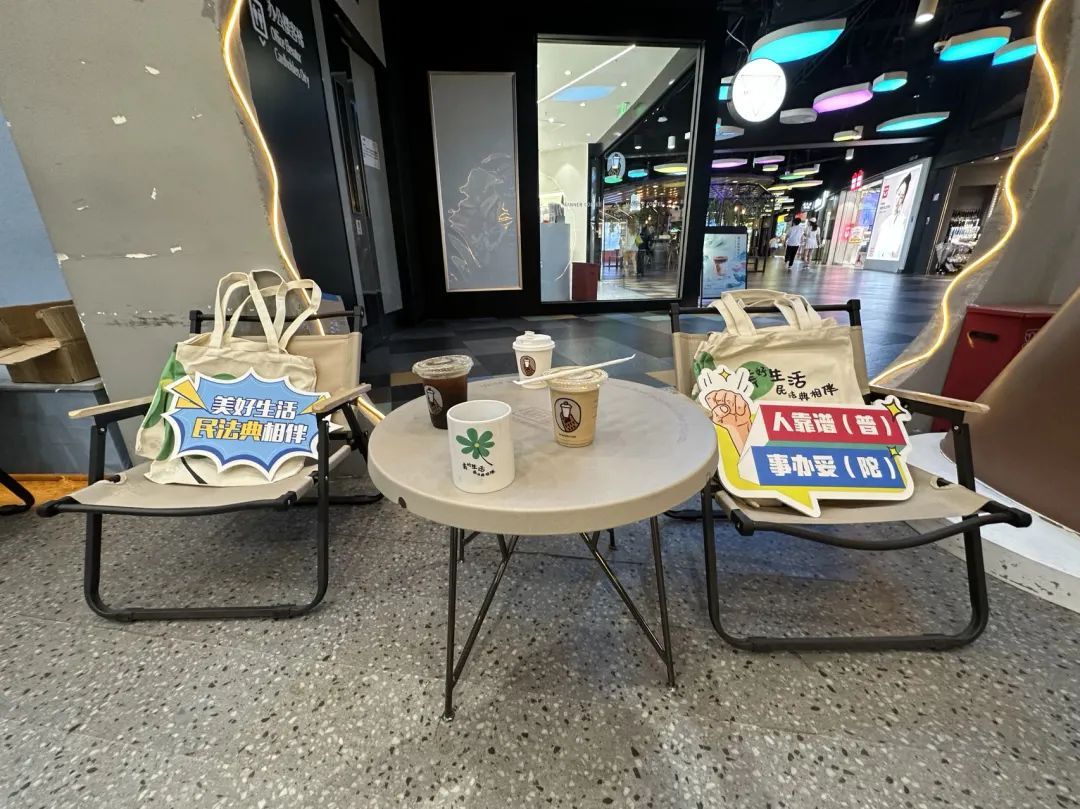 随后,在熊爪咖啡线下门店开展了民法典普法宣传活动,呼吁更多市民学习民法典,维护残疾人合法权益。现场对市民的法律咨询进行了答疑,同时向市民发放了民法典主题水杯、杯垫、环保袋,路过的市民纷纷驻足参与,营造了浓厚的普法氛围。