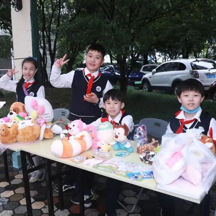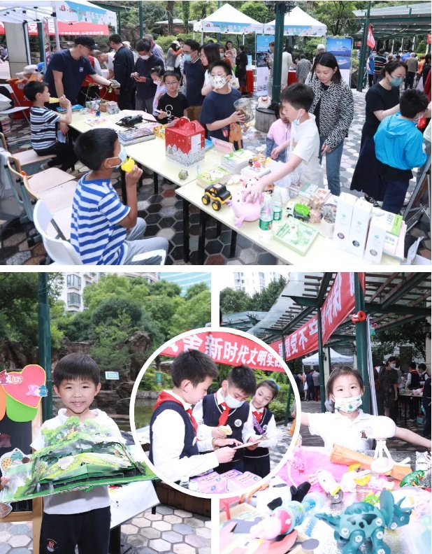 由秋月枫舍社区小队、中北一小、上海卓越美式幼儿园小朋友们共同准备的爱心商品包括——集卡、玩具、漂亮饰品、精心培育的绿植,还有响应世界环境日“减塑捡塑”口号,用餐盒制作的纸巾盒……受到孩子们影响的居民一来到现场便为这里热闹的气氛、琳琅满目的公益物品所吸引。