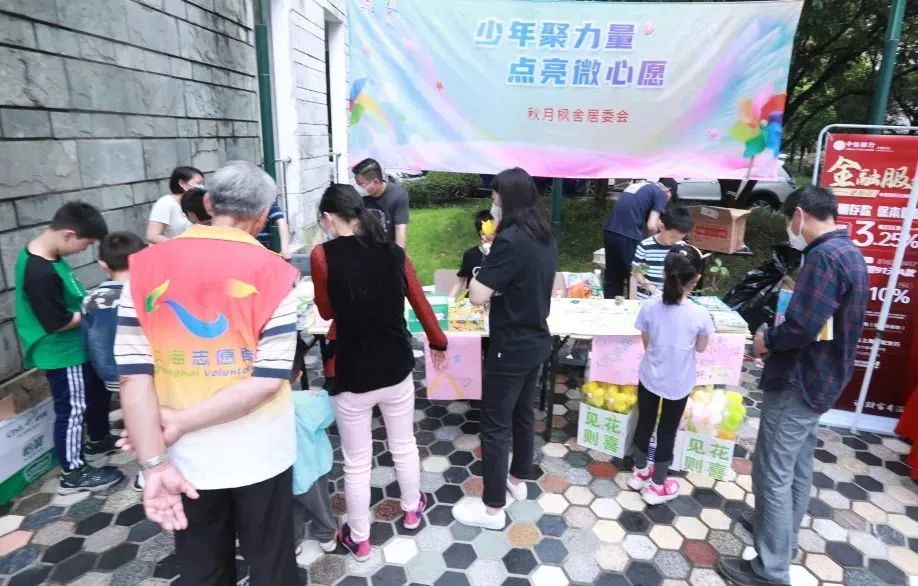 日前,位于石泉路街道的秋月枫舍居民区党总支、居委会便联合“秋叶枫华”党建联盟单位开展了一次生动鲜活的“少年聚力量,点亮微心愿——迎‘六一’安全‘童’行公益集市”活动,让小朋友们在早早体会社会角色的过程中,树立奉献意识 、担起公益责任,助力困境青少年实现微心愿。